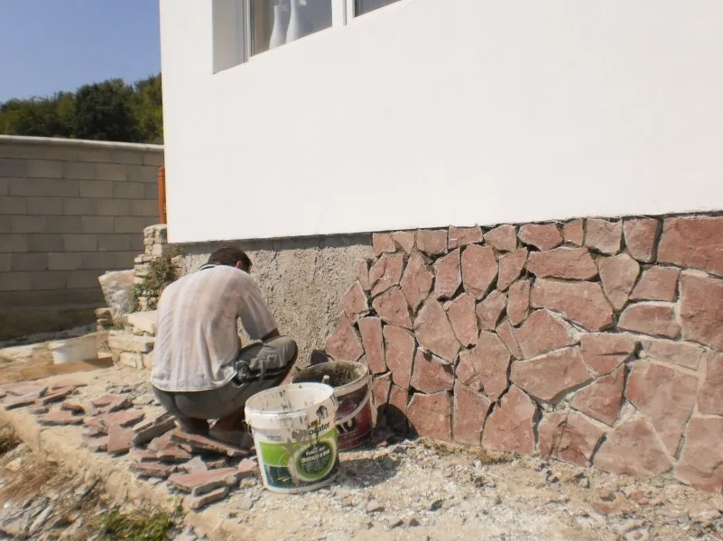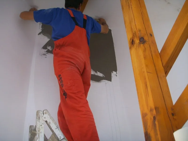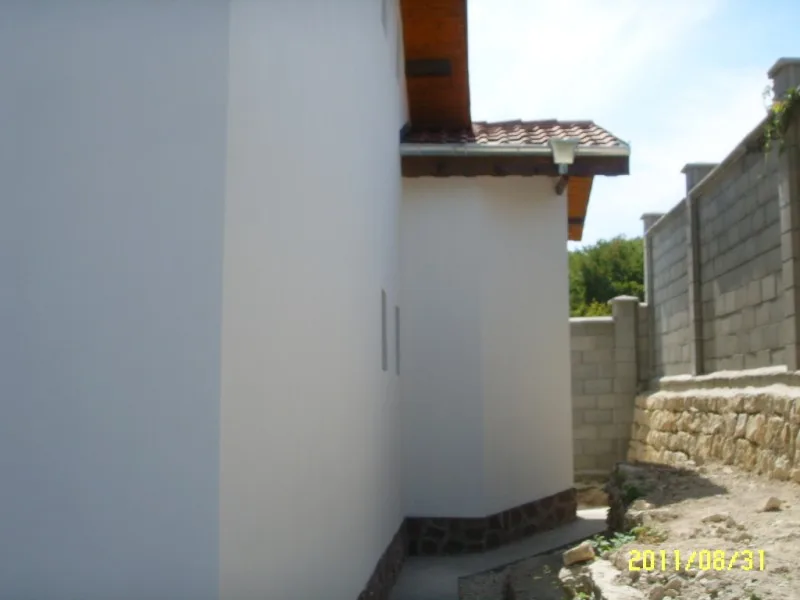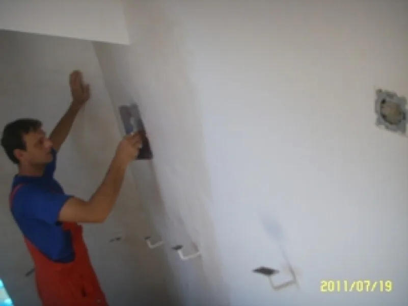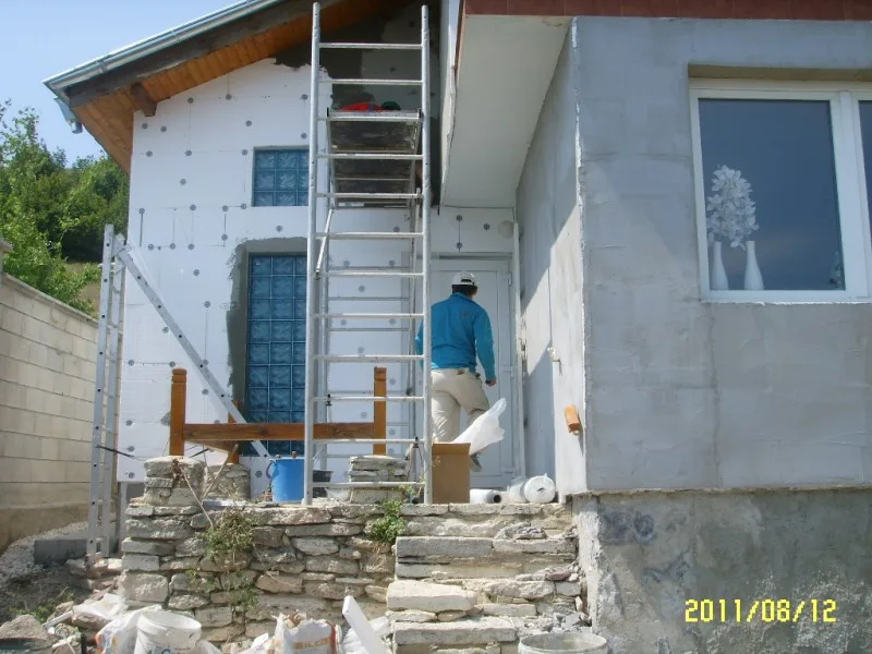 Вътрешните работи започнаха с отстраняване на подпухналата мазилка и измазване на стените - подготовка за грундиране и боядисване. Външните работи продължават с измазването на външните стени във връзка с полагането на цокъла от гнайс.