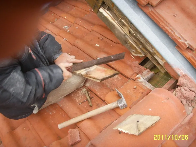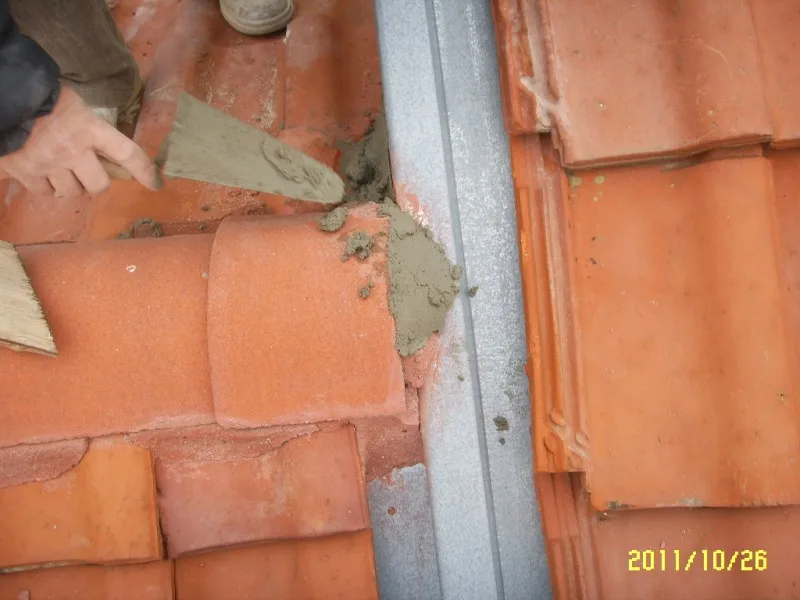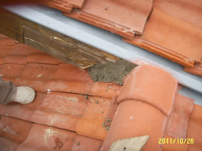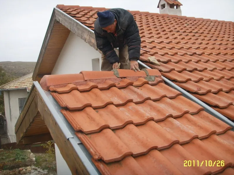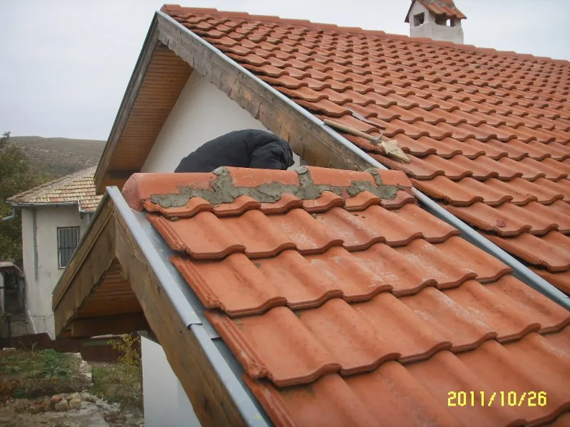 Капаците на покрива са частично ремонтирани с циментов разтвор от двете страни и между всеки един от тях. На местата, където е необходимо е направен ремонт.