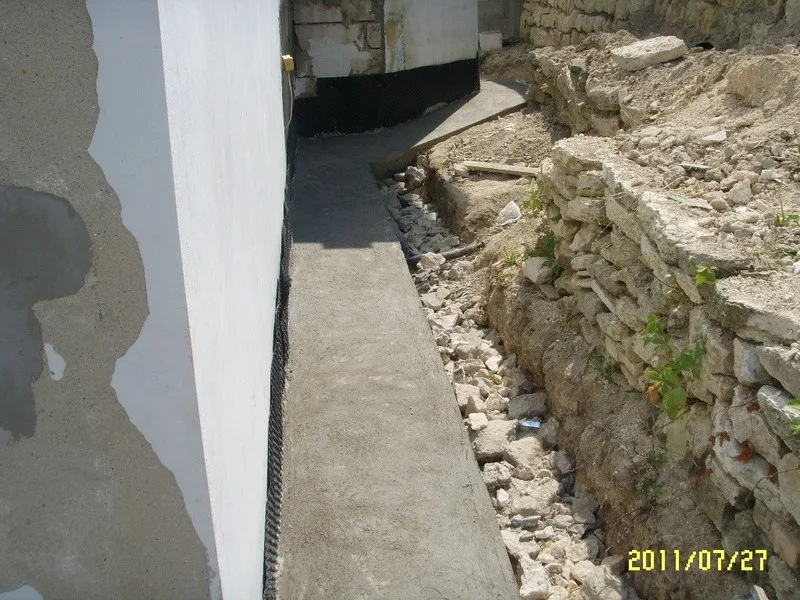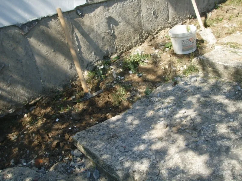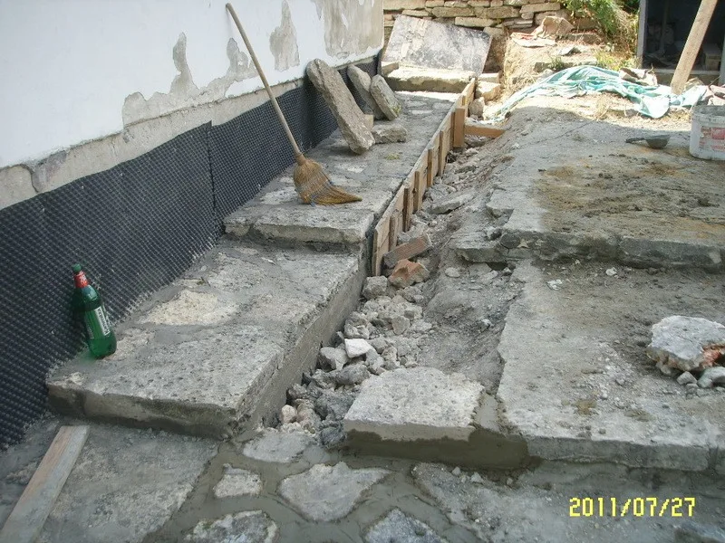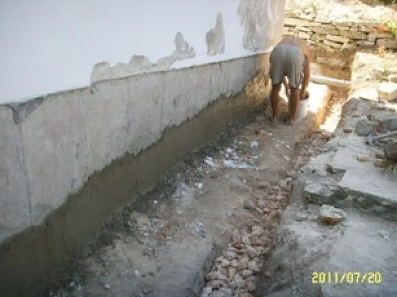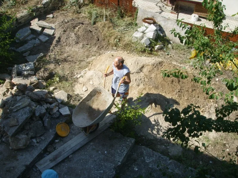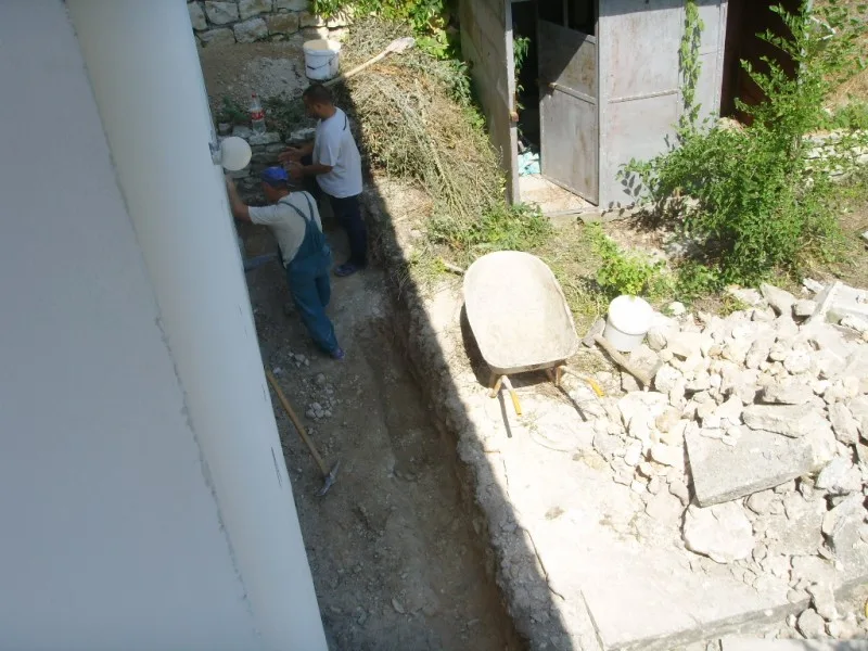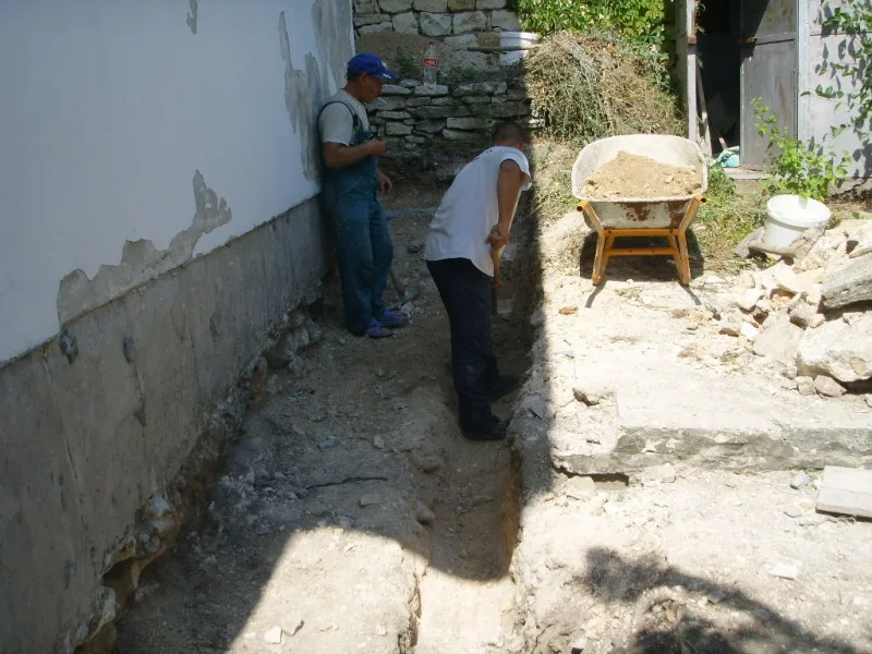 Започнахме строителните работи с разрушаването на стария цокъл и изкопаването на канал за дренаж.