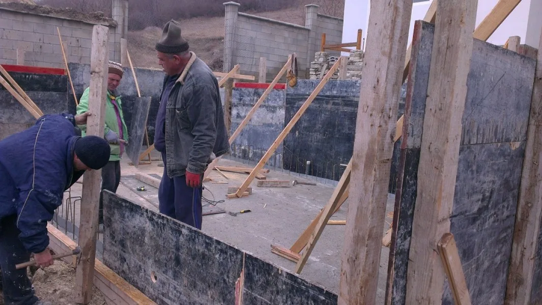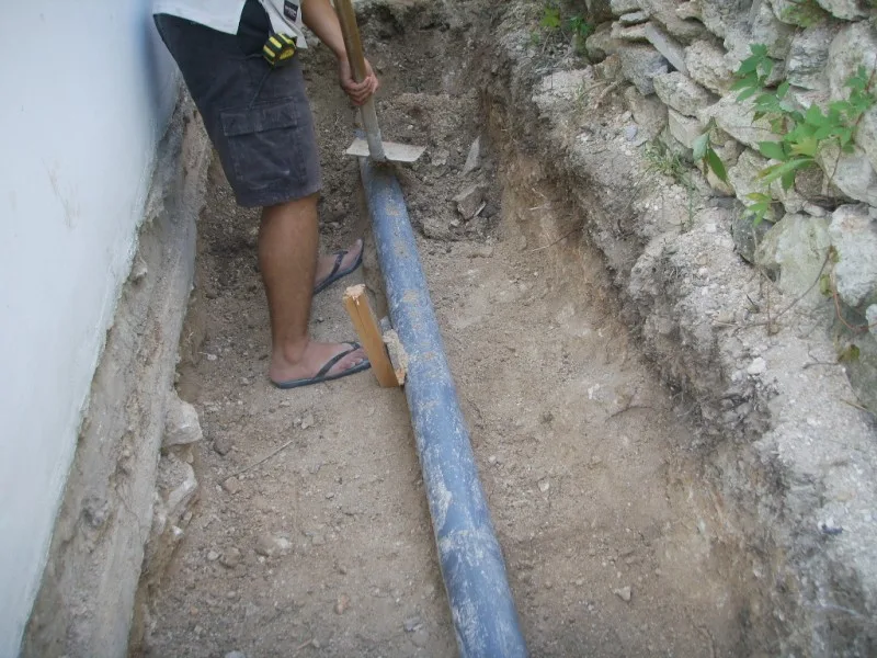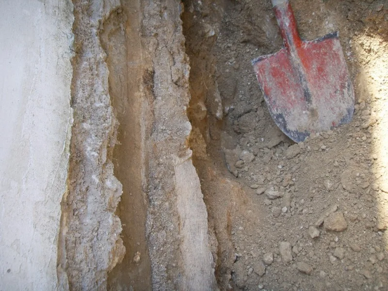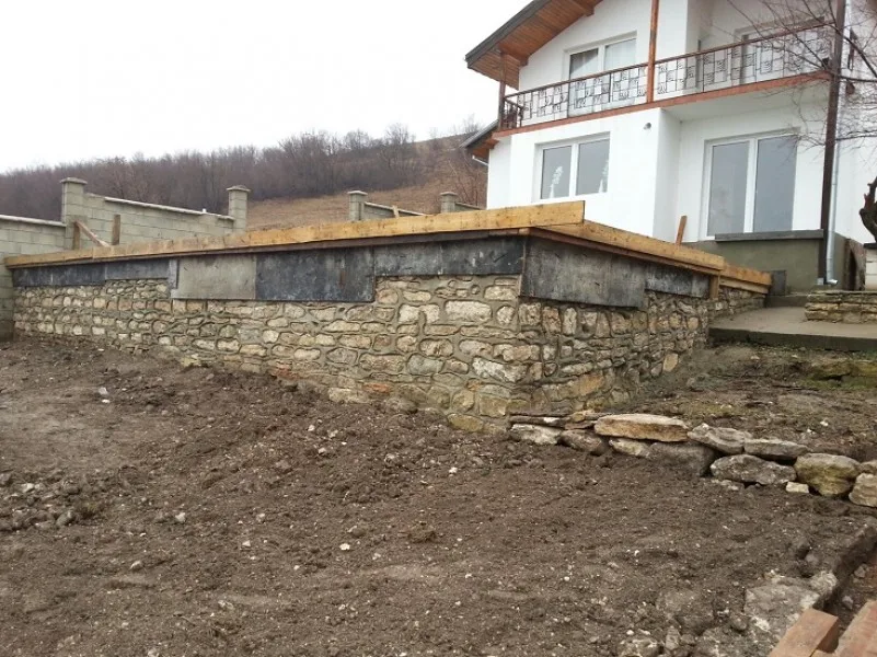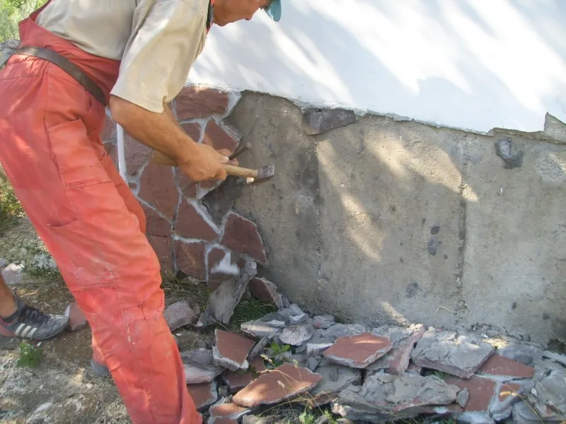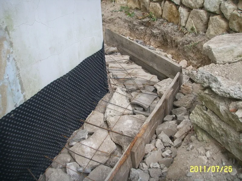 Започнахме строителните работи с разрушаването на стария цокъл и изкопаването на канал за дренаж.