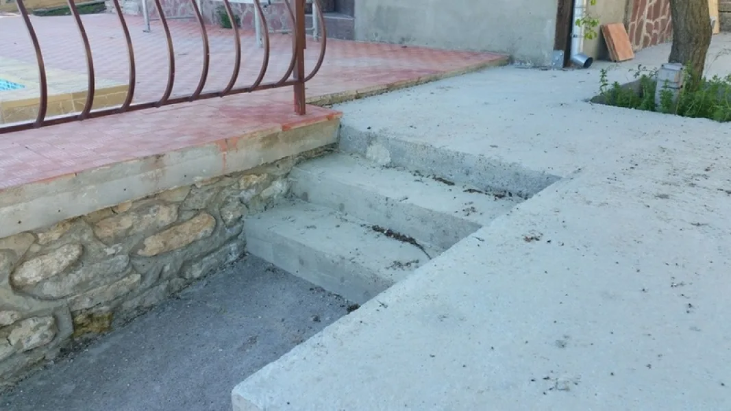- бетонови настилки, стъпала, площадки в двора;