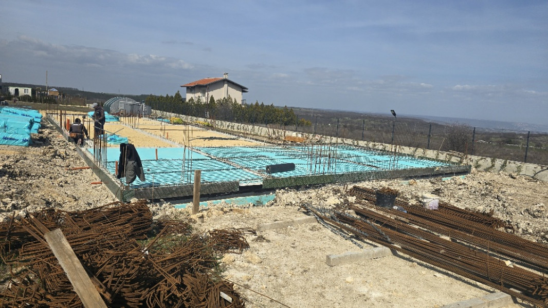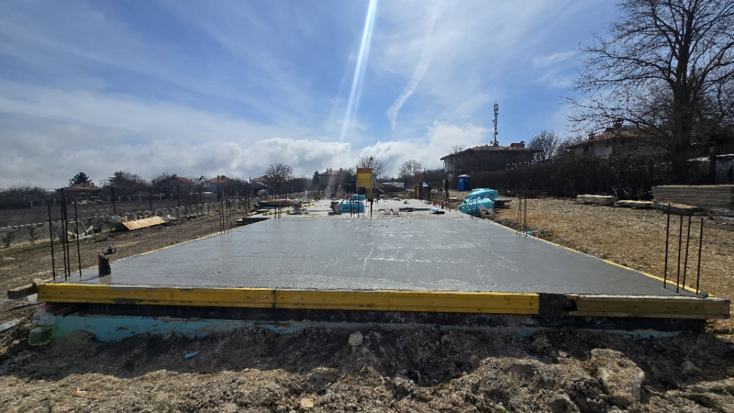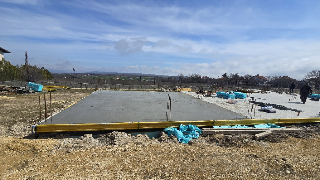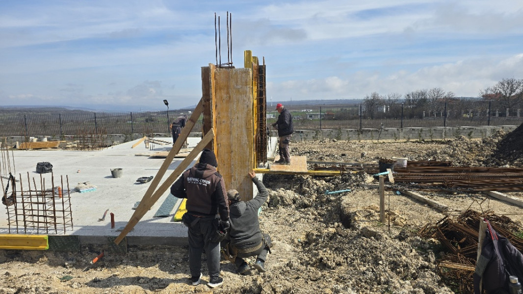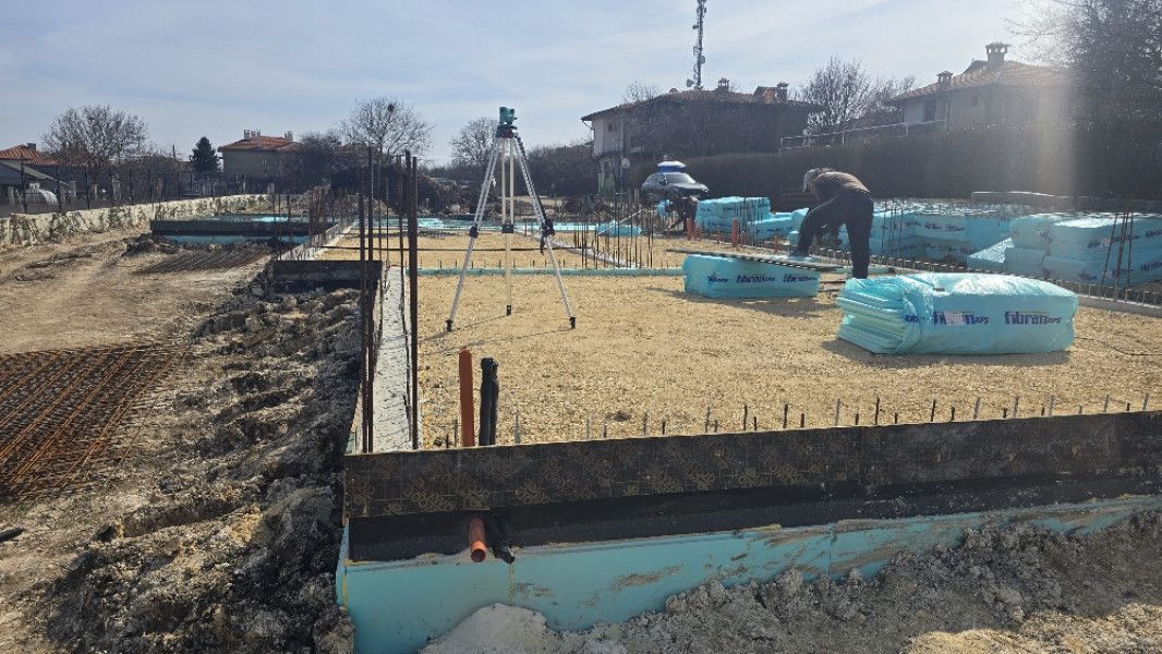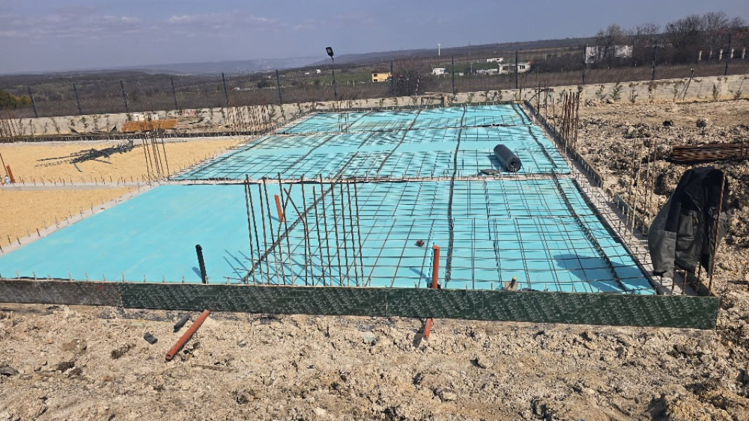 Die Bauarbeiten an einem Haus in Varna gehen weiter. Das Team der Baufirma Varaks hat den Boden aufgeschüttet und verdichtet, und die Fachleute haben die Ebenen mit hochwertigen Geräten sorgfältig bestimmt. Anschließend wurden unter dem Bodenbelag eine Polyethylenmembran und eine Fibran-Wärmedämmung angebracht. Die Bewehrung für die Betonplatte wurde angebracht. Der Beton wurde in Höhe 0,00 gegossen. Der Beton für den Garagenraum wurde ebenfalls gegossen und poliert. Die Schalung wurde hergestellt und die Bewehrung für die Säulen wurde angebracht.