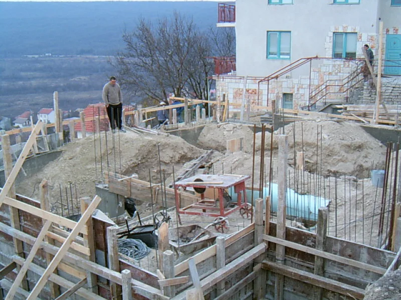 From first starting to construction of first floor has taken just 12 weeks. The whole massive villa, constructed under the difficult conditions, in winter, will take an incredibly short 7 months. Our client hasn't visited once during construction, preferring to enjoy his photographs and reports at home in England.
