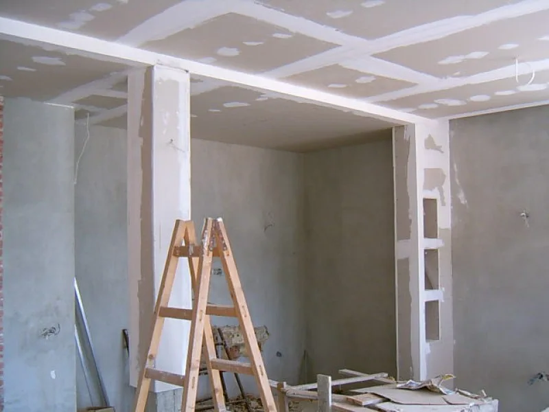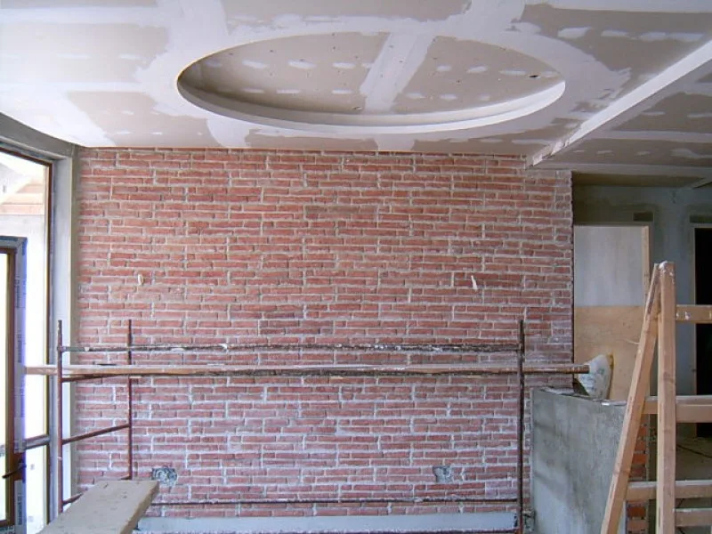 The workforce on day of picture taking was down to “only” 11, divided into 3 specialist teams: Facing stone fitters, plasterers, and plasterboard fitters.