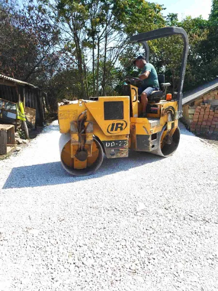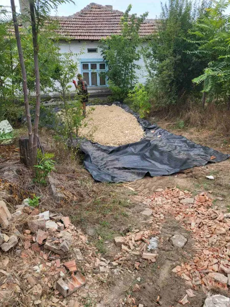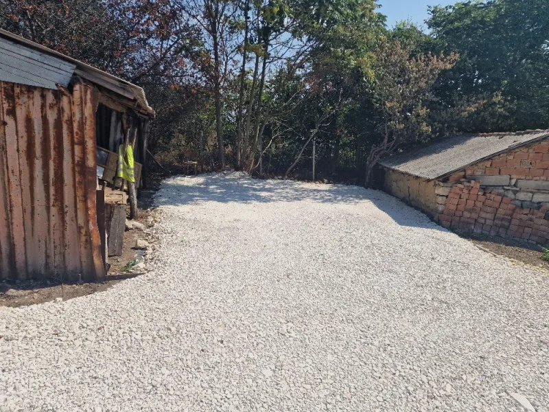 The owner of this property in General Toshevo contacted construction company "Varaks" for the construction of parking lots, landscaping and concrete flooring. The flooring for the parking lots and the landscaping is made of two layers (large and small) gravel. The concrete flooring is planned to be laid in the workshop of the property.