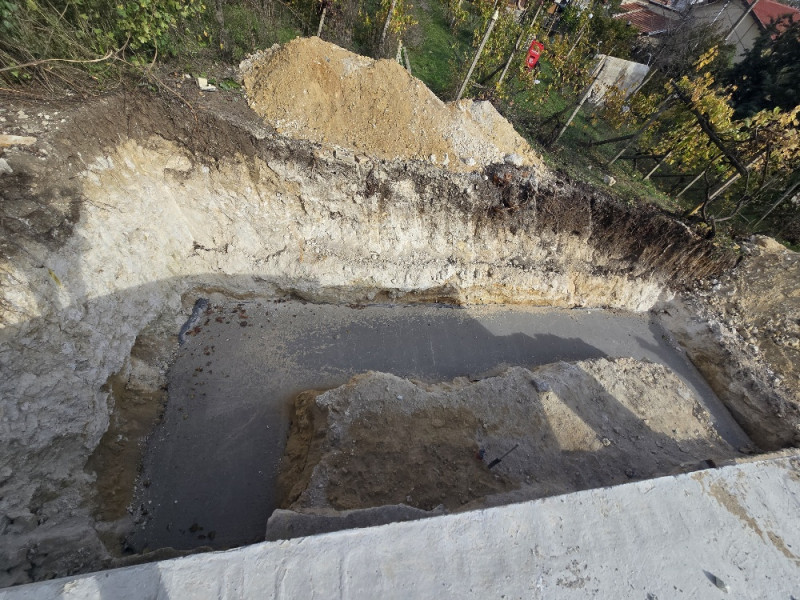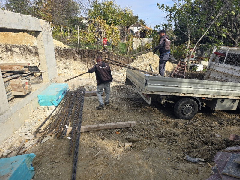 Construction company Varaks continues the construction works on this new house in Varna. The demolition by hand of the old building has been completed and the works on the excavation for foundations has begin. The levels have been set. Access to the construction site is difficult and requires increased attention and high professionalism from the construction workers who deliver the materials and operate the equipment. Concrete has been poured before foundations. The fitting of the shuttering and reinforcement bars in strips has also begun.