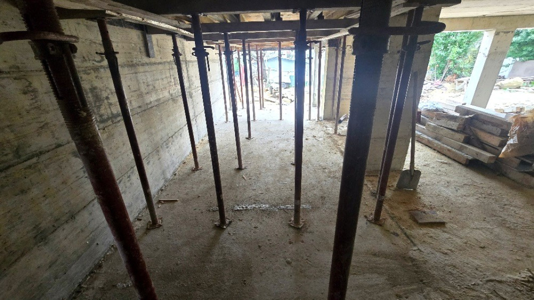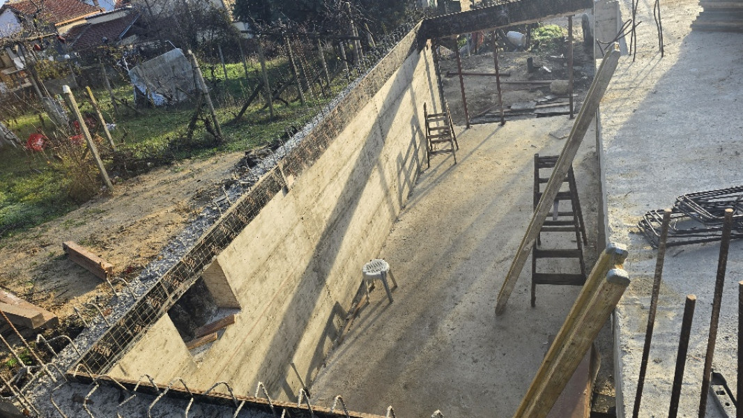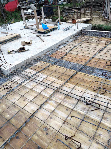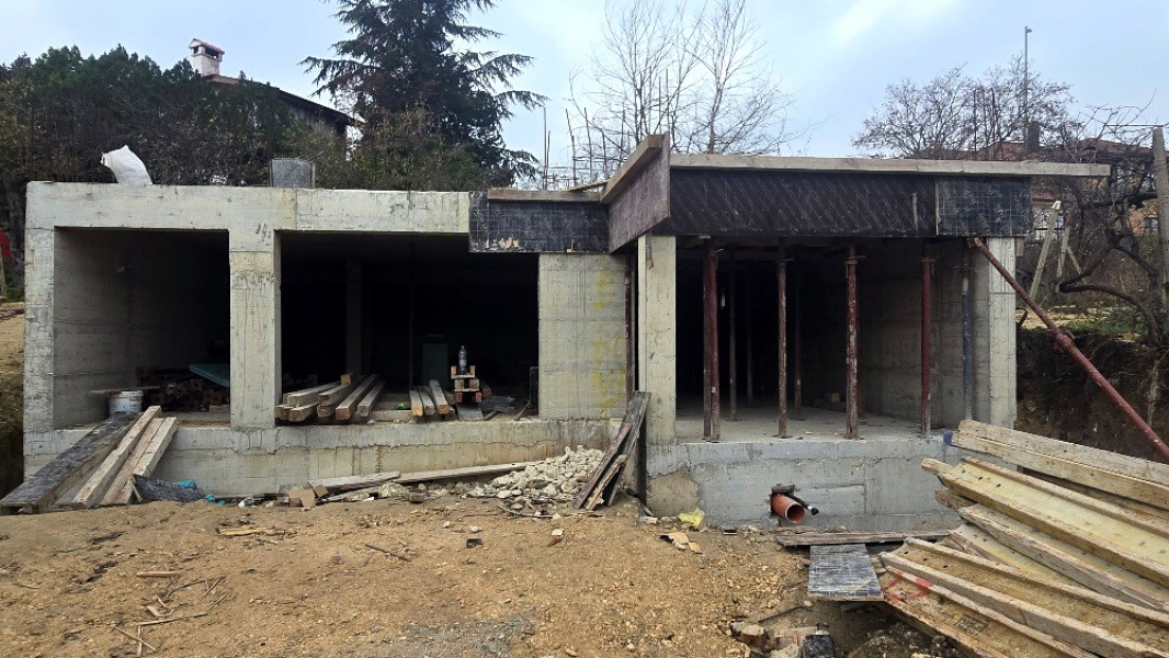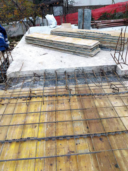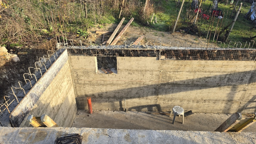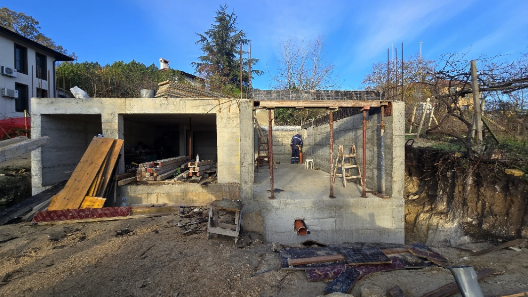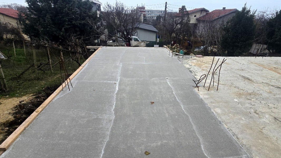 The building works of the second part of this house in Varna continue with the construction of reinforced concrete walls up to elevation 0. After their construction, the building workers make shuttering and reinforcement for the slab at elevation ±0.00. This is followed by pouring of concrete, which completes the structural slab and prepares it for the next stages of construction.