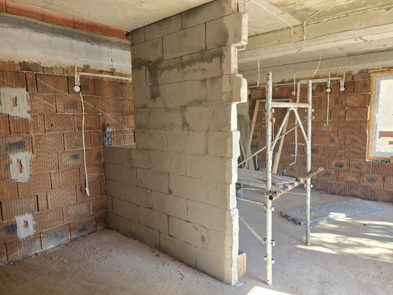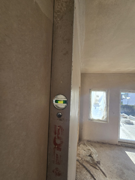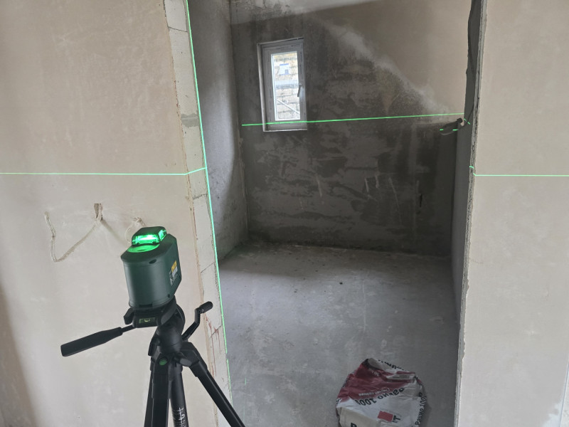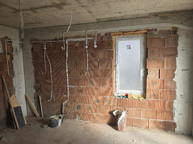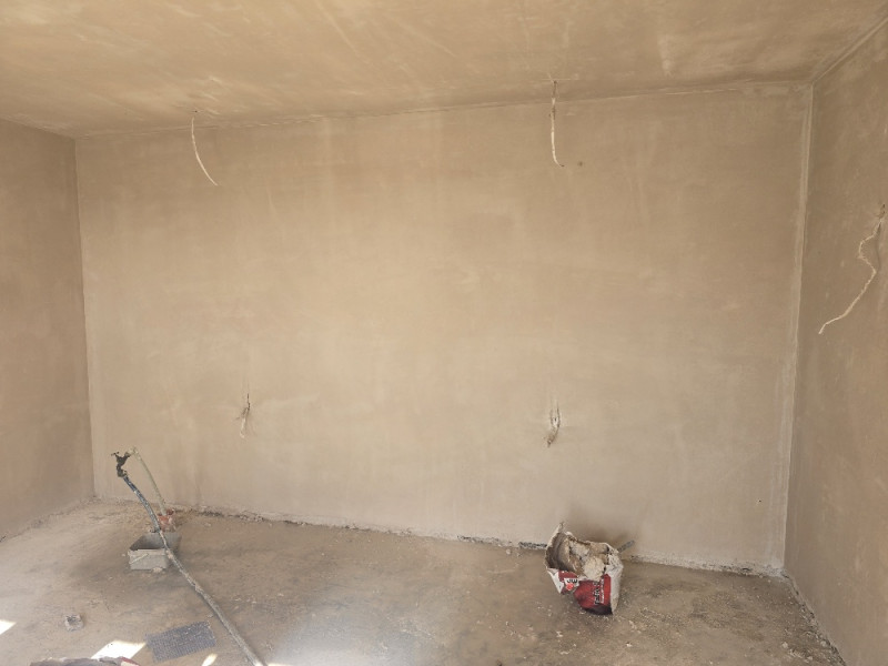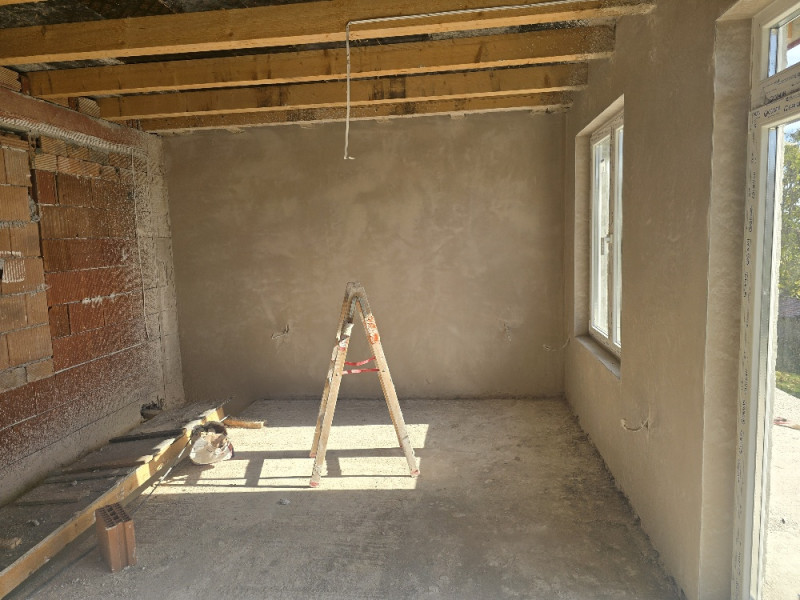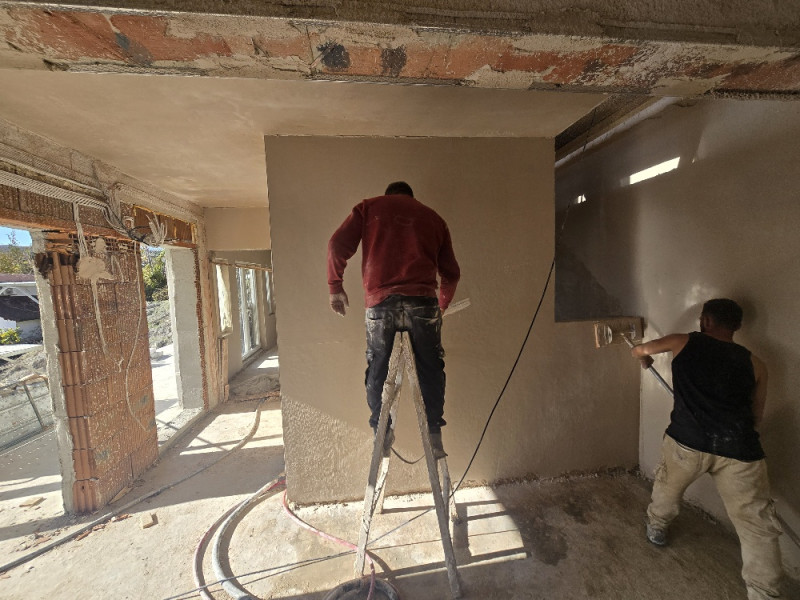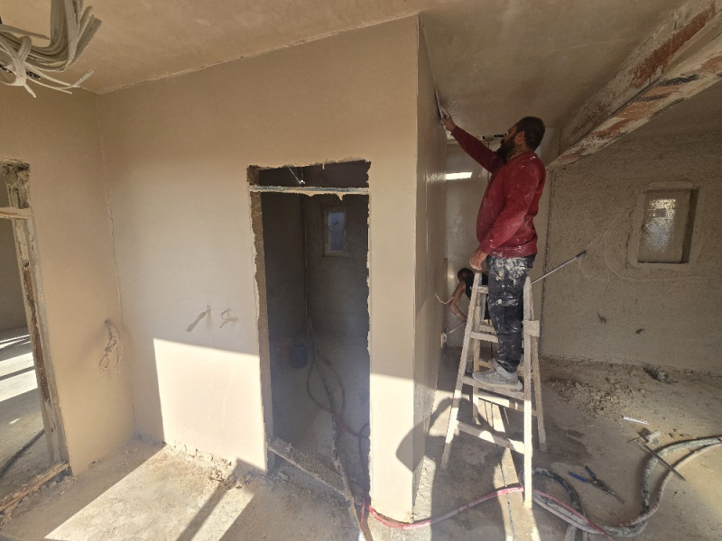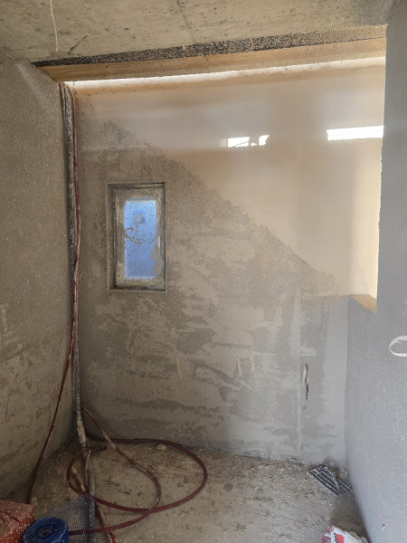 - Internal plastering on walls and ceilings (ground and first floor, bathrooms and bedrooms) - applying contact primer, plastering walls and ceilings;