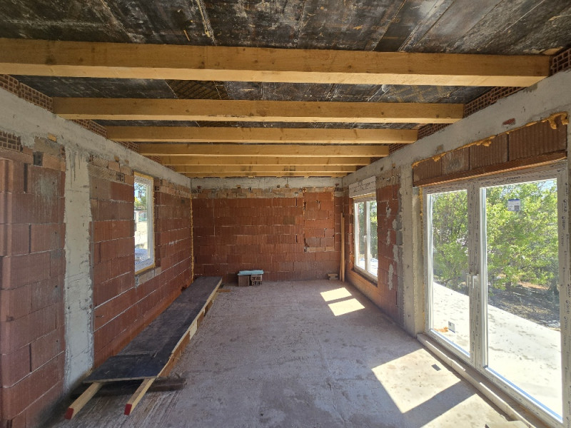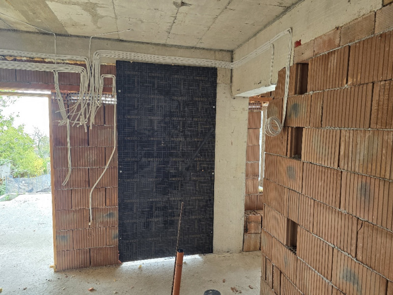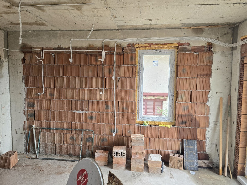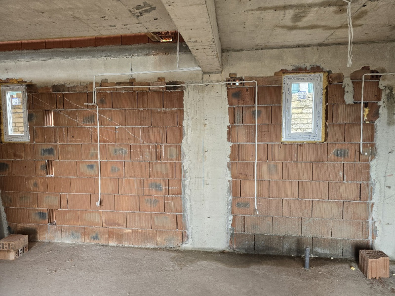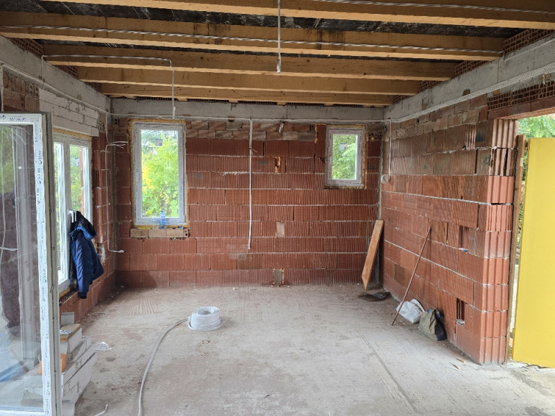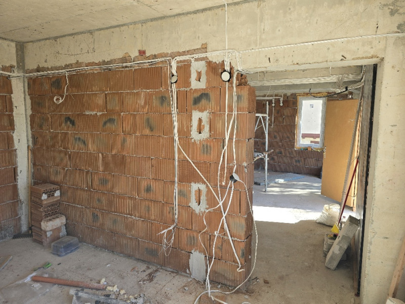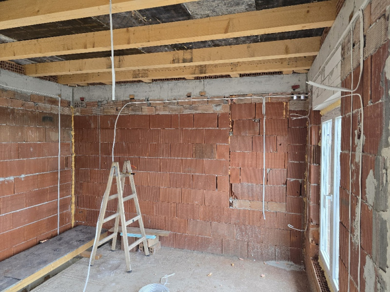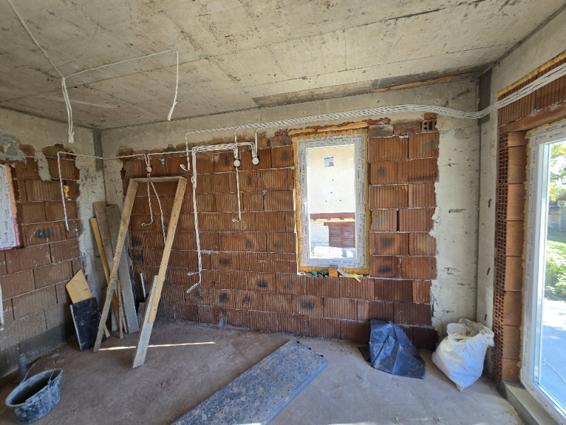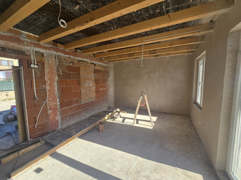 - Internal plastering on walls and ceilings (ground and first floor, bathrooms and bedrooms) - applying contact primer, plastering walls and ceilings;