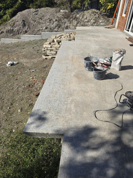 - Concrete patio and steps at the entrance door (first floor) - formwork for steps and patio, reinforcement and pour concrete, strengthening with supports, formwork removal;