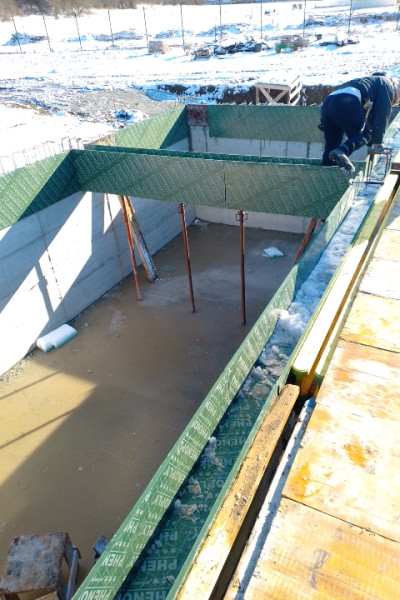 7) Thermal and waterproofing by fitting polyethylene membrane and fiberboard - 3 cm under the flooring and 10 cm on the external walls at elevation ±0.00.