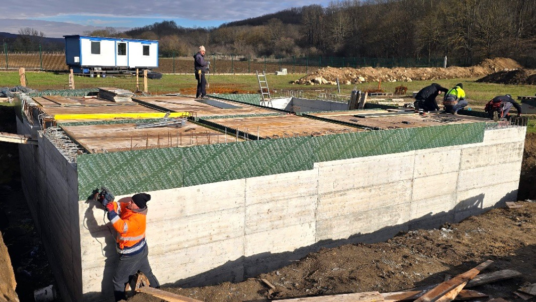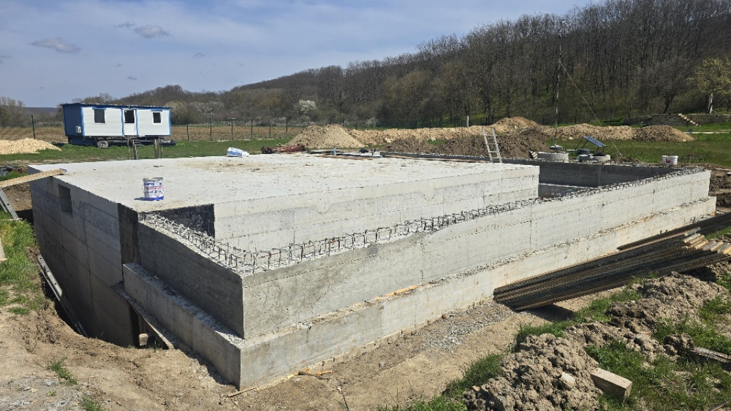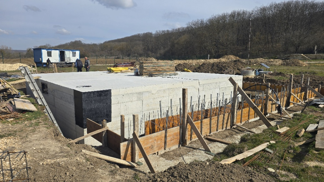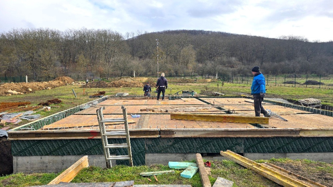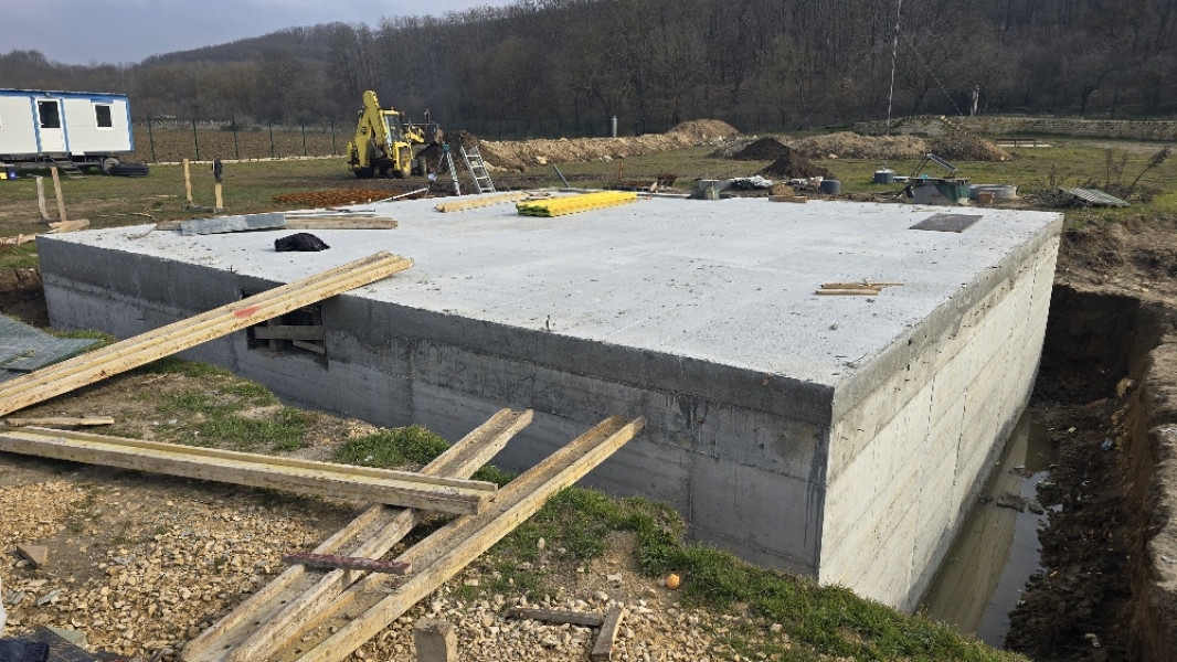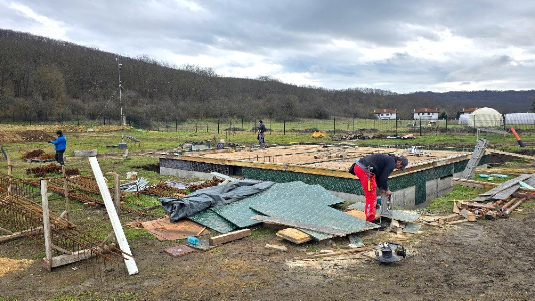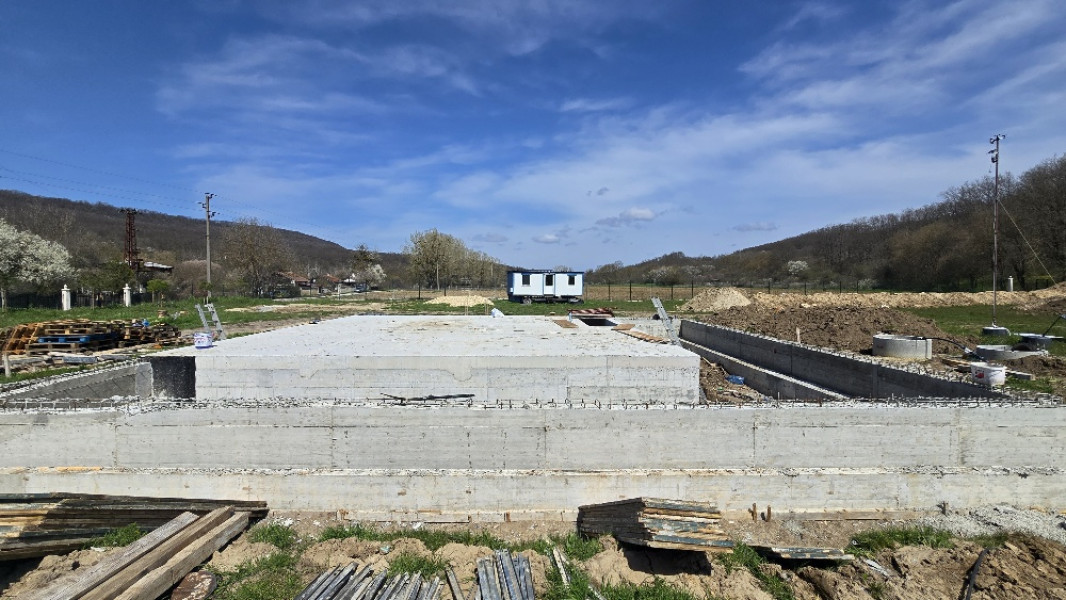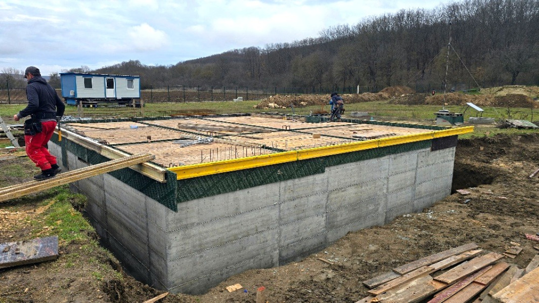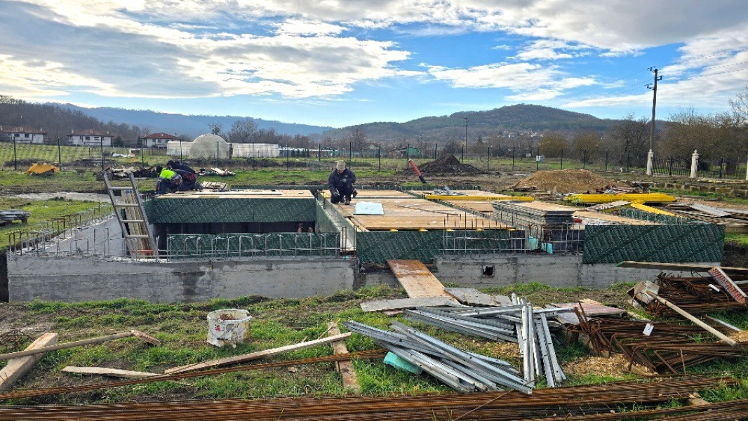 Construction company Varaks continues the building works on this house in Dolishte with the fitting of wall reinforcement up to elevation +0.00. The shuttering has also been made, after which the structural concrete is poured, which is compacted and left to cure. In the places provided in the project, the construction workers fit reinforced concrete columns.
