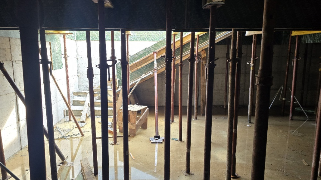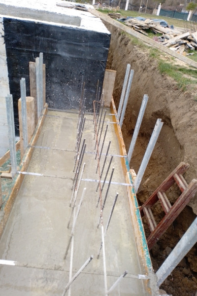 Construction company Varaks continues the works on the rough construction of the house in Varna. The building workers have removed the formwork beams and the supports. Then, works began for the strip foundations for the garage place and the patio around the house. Formwork, reinforcement and concrete works for strip foundations have been done.