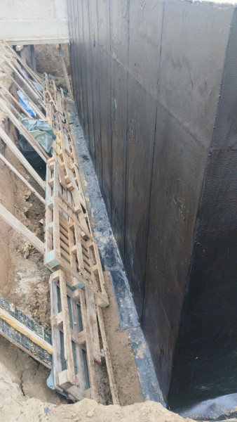 3) Lay bitumen primer and two layer gas-fired waterproofing on the underlying concrete, footing and walls up to elevation ±0.00;