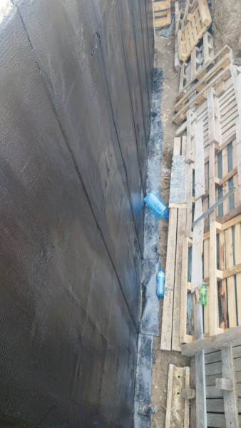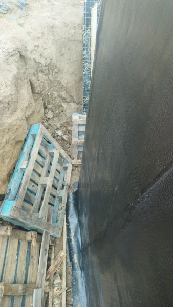 Construction company Varaks has started the building works of this house in Varna by drawing out the building. The construction workers are setting the levels and setting out the grade. Then the excavation works begin. The initial concrete base has been poured. After the concrete base, a bitumen primer for the waterproofing was applied.