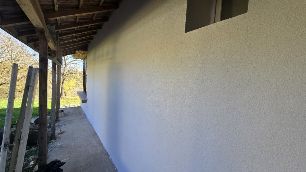 The external renovation works are in an active phase. The team of building company Varaks removed the metal structure and the old windows on the veranda and built walls. New UPVC joinery has been fitted. After the installation of thermal insulation on the facade walls, the work continued with fitting support netting and plaster, priming and subsequent application of high-quality mineral plaster, which ensures a finished and durable appearance.