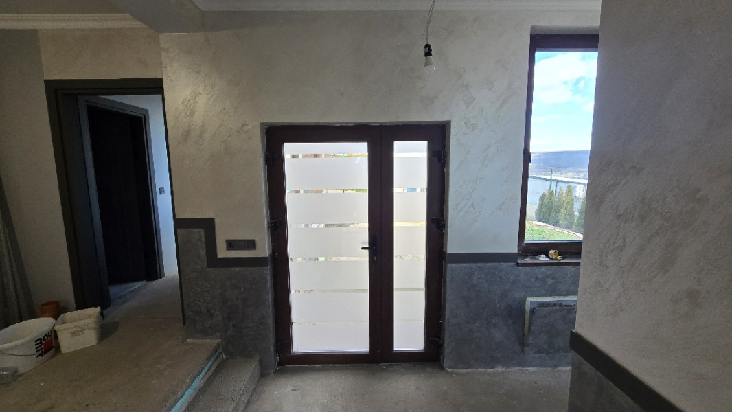 През месец януари строителна фирма "Варакс" монтира висок клас външна дограма на къщата, като стъклопакета е 45мм и е от най-добро качество.