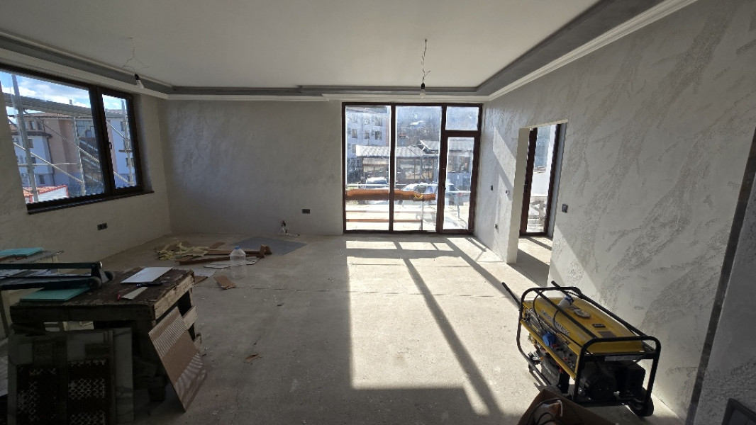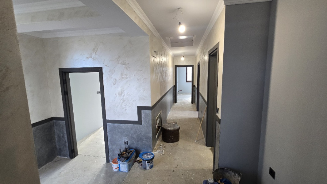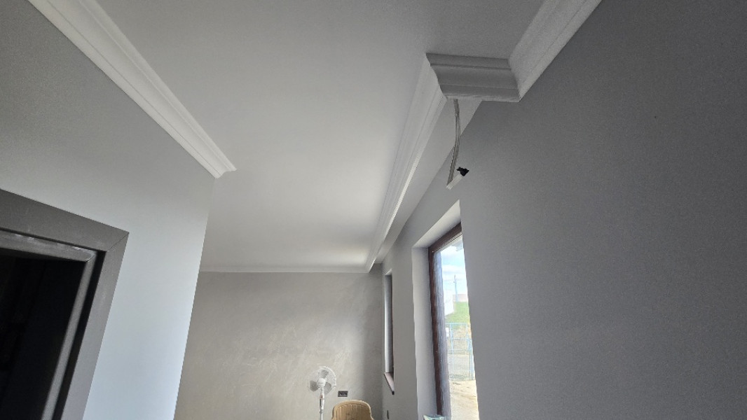 Майсторите строители на строителна компания Варакс продължават строежа на тази къща до Балчик с вътрешни довършителни работи. Положена е качествено декоративна мазилка и декоративни корнизи по стени. Стените са боядисани, съгласно проекта на клиента.
