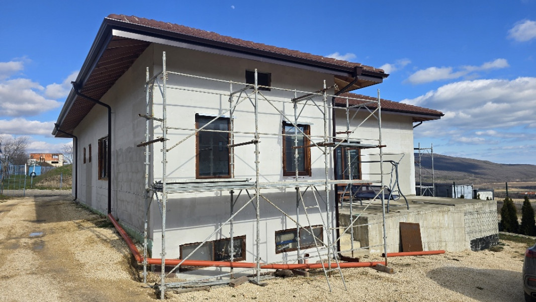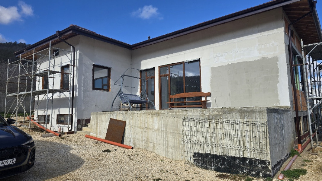 Строителните работи на този обект продължават с направата на ВиК и ел.инсталации на основната къща.