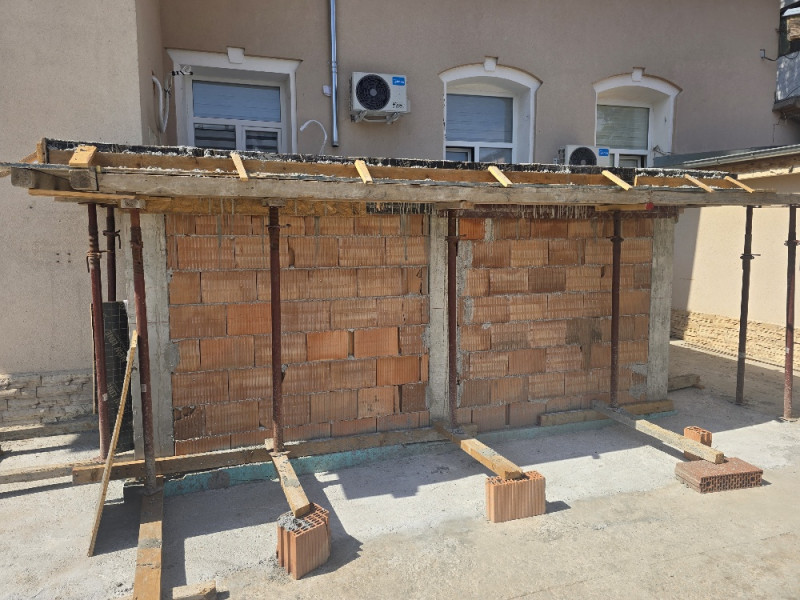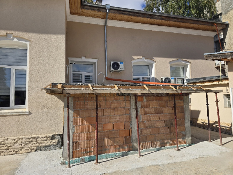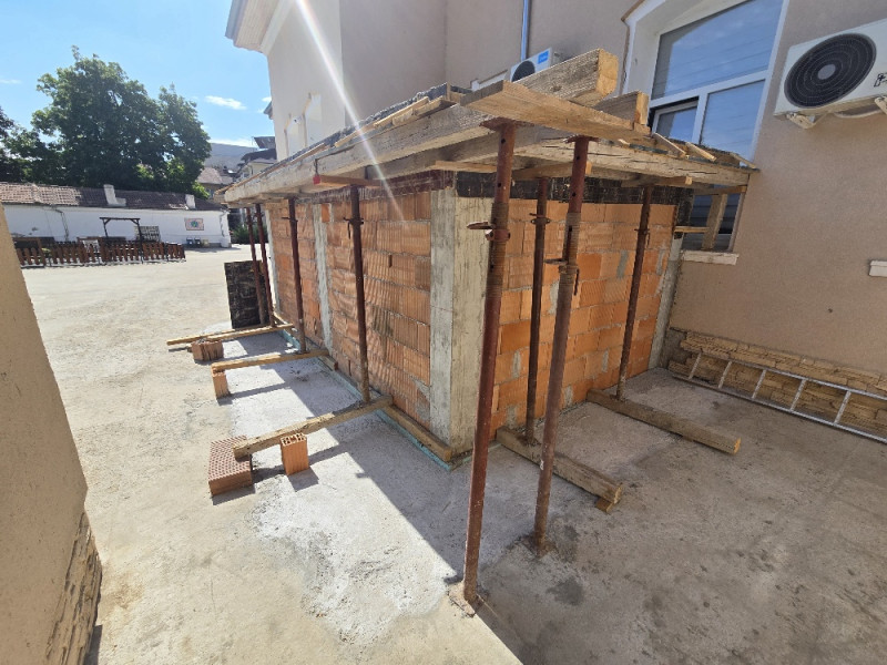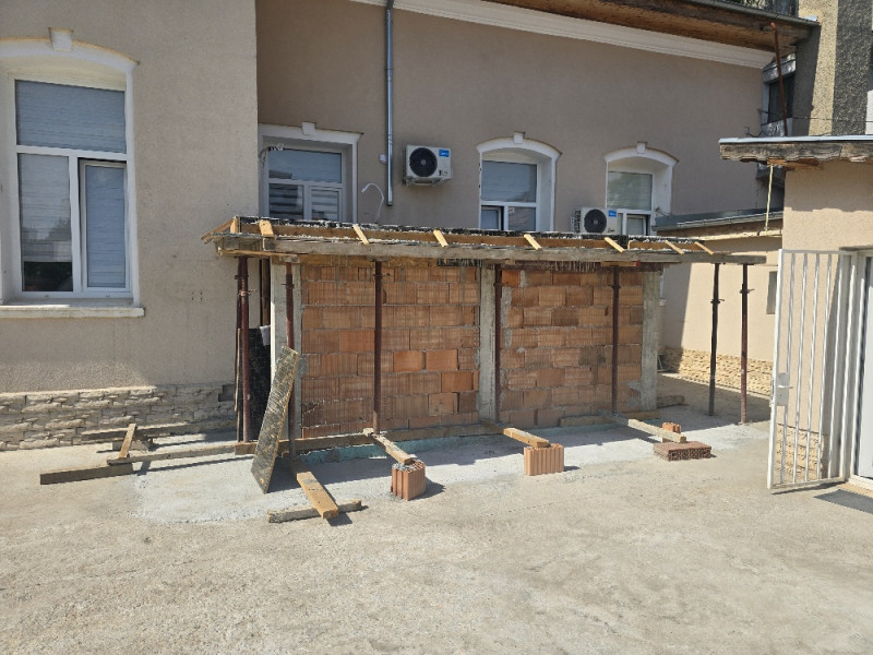 Демонтирани са стари конструкции от гипсокартон и е извършено извозване на отпадъци. Извършени са и външни площадкови работи – насипване и уплътняване на трошен камък, както и строителството на водоплътен бетонов тротоар около новата част. Всички строителни работи са изпълнени съгласно проекта и строителните норми.