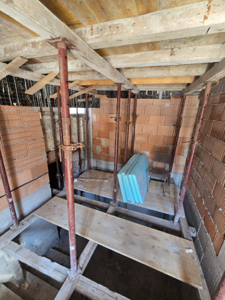 Майсторите зидаро-кофражисти на строителна компания Варакс изпълниха пълен обем кофражни, армировъчни и бетонови работи – включително фундаментна плоча, стени, колони, греди, плочи и стълбище. Част от конструкцията е изпълнена на височина 4.05 м, с изнасяне на плочата за формиране на козирка. Положен е подложен бетон и конструктивен бетон с бетонпомпа.