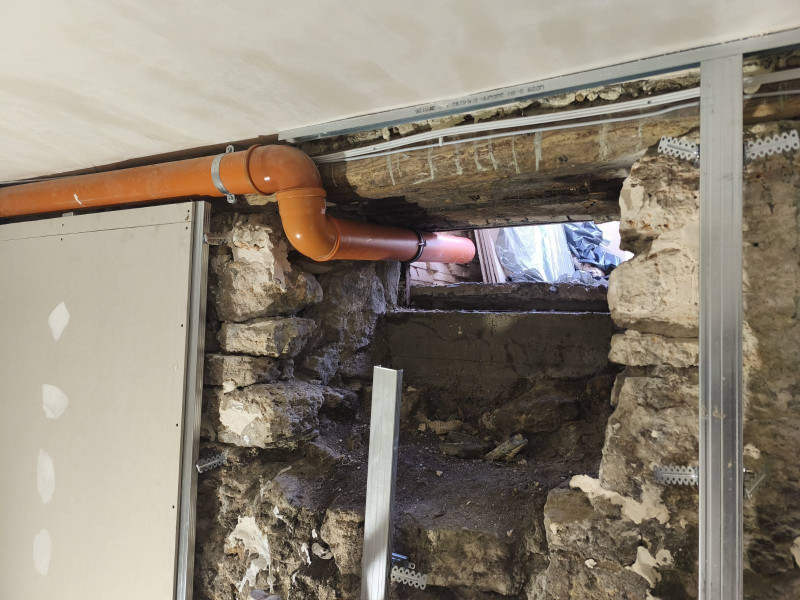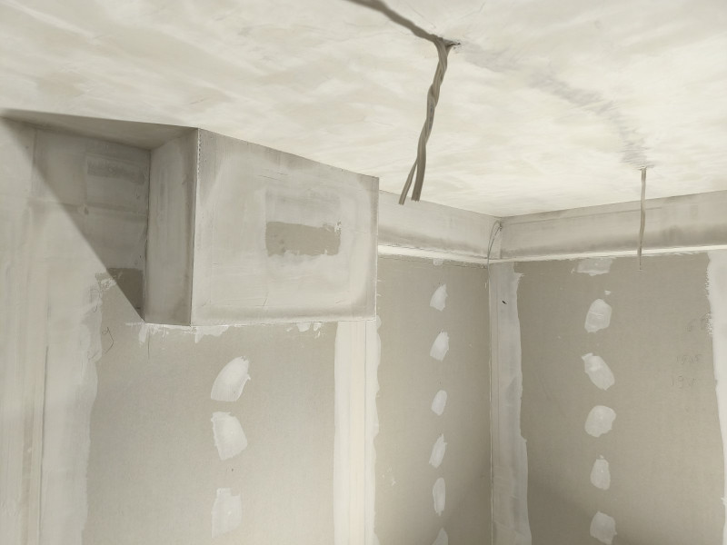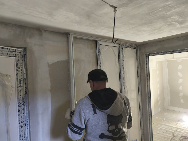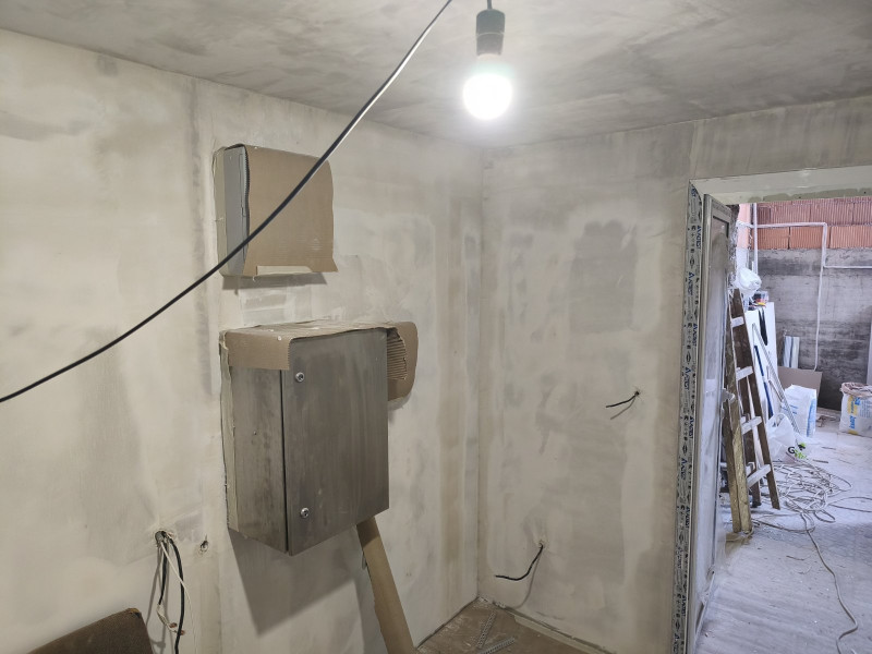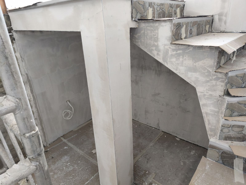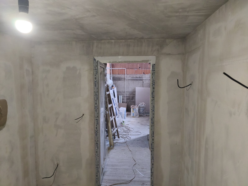 Ремонтните работи по училището в Добрич, извършвани от строителна компания „Варакс“, продължават. Облепени са подовите настилки с тиксо и картон, за да се предпази новопоставения гранитогрес по време на следващите етапи от ремонта. Монтирано е скеле и след това започва монтаж на гипсокартон по стени и таван. Оформени са отворите на вратите и прозорците Строителната работа продължава с шпакловане по стени и таван.