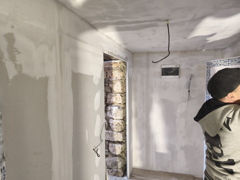 Ремонтът на пристройката на това училище в Добрич продължава с планираните от строителна фирма „Варакс“ строително-ремонтни работи. Към момента е изпълнен важен етап от вътрешните работи – положена е самонивелираща замазка, която осигурява равна и стабилна основа за следващите довършителни дейности. След пълното ѝ изсъхване строителните работници започват полагането на гранитогрес по пода.